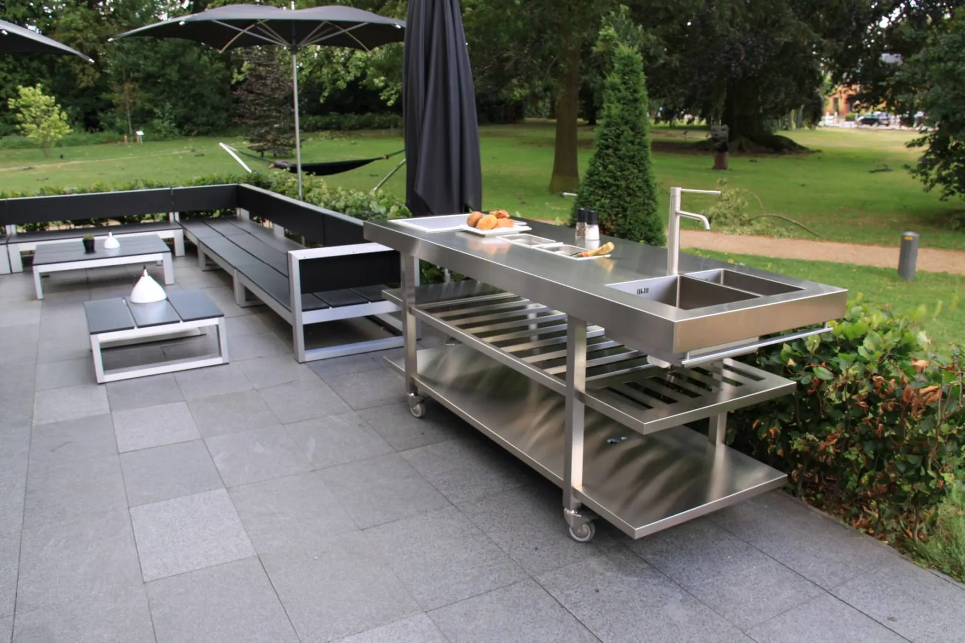 Une cuisine d'été en inox garantissent pérennité et entretien facile c'est pourquoi c'est très adopté par les professionnels.