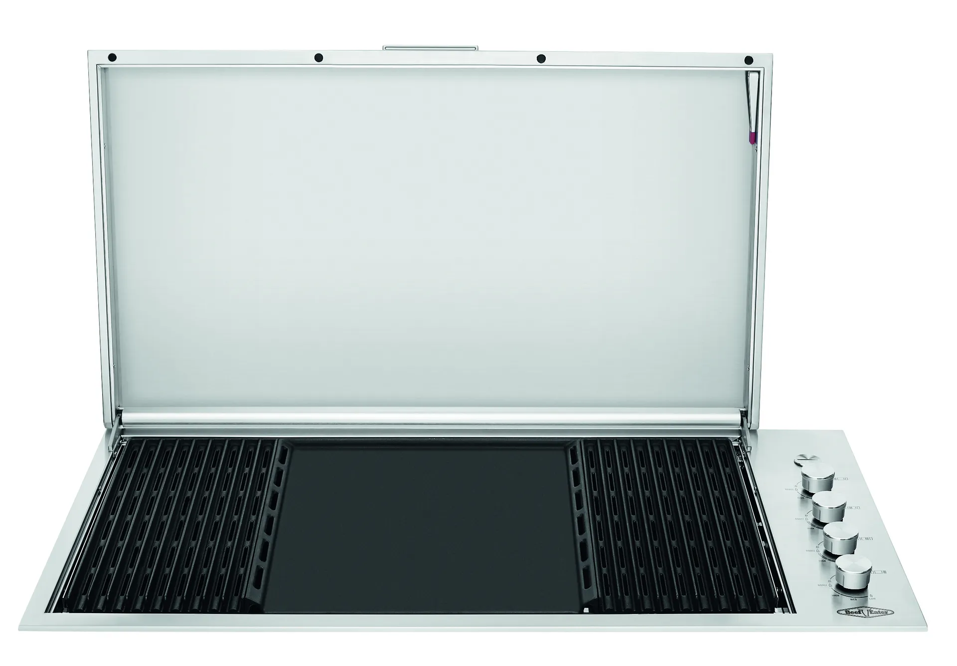 Le barbecue Proline à 6 brûleurs avec couvercle plat amovible transpose les techniques de cuisine professionnelles à la cuisson en extérieur. Le couvercle plat peut être entièrement retiré, transformant ainsi le barbecue en une plaque de cuisson ouverte de type teppanyaki. Six brûleurs à double allumage assurent un contrôle précis de la chaleur sur toute la surface de cuisson. La plaque chauffante en fonte surplombe quatre brûleurs centraux, tandis que la surface de cuisson inclinée dirige l'excédent d'huile vers des bacs avant amovibles pour un nettoyage facile. Les commandes latérales, ornées de détails gravés au laser et du logo BeefEater, sont conçues pour durer. Fabriqué en acier inoxydable 304 avec un foyer en émail vitrifié entièrement soudé. Un brûleur latéral quadruple est disponible en option. Garantie 25 ans.
