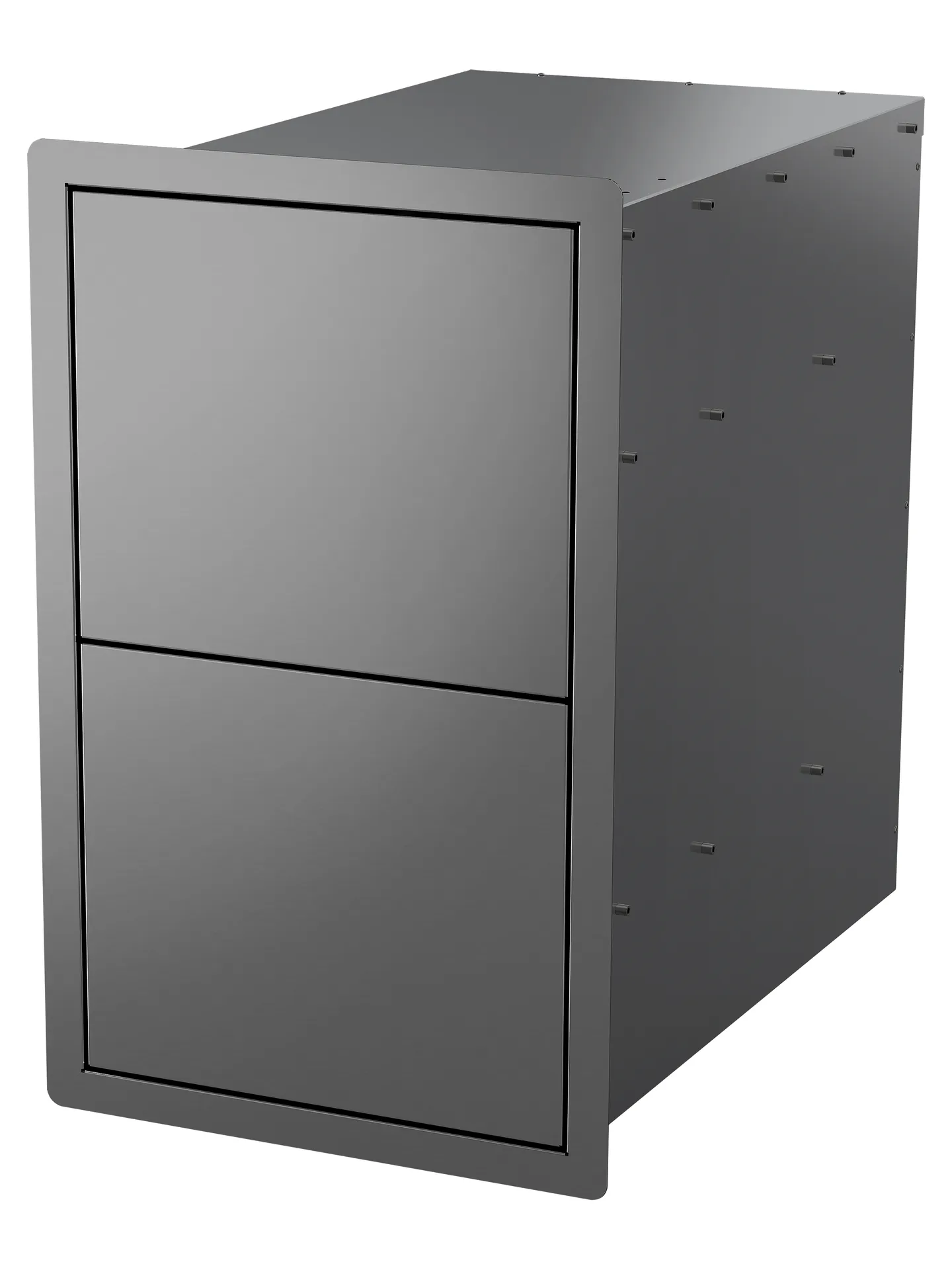 Double tiroir en acier inoxydableDimensions de découpe:Largeur 322 mmHauteur 495 mmProfondeur 527 mm